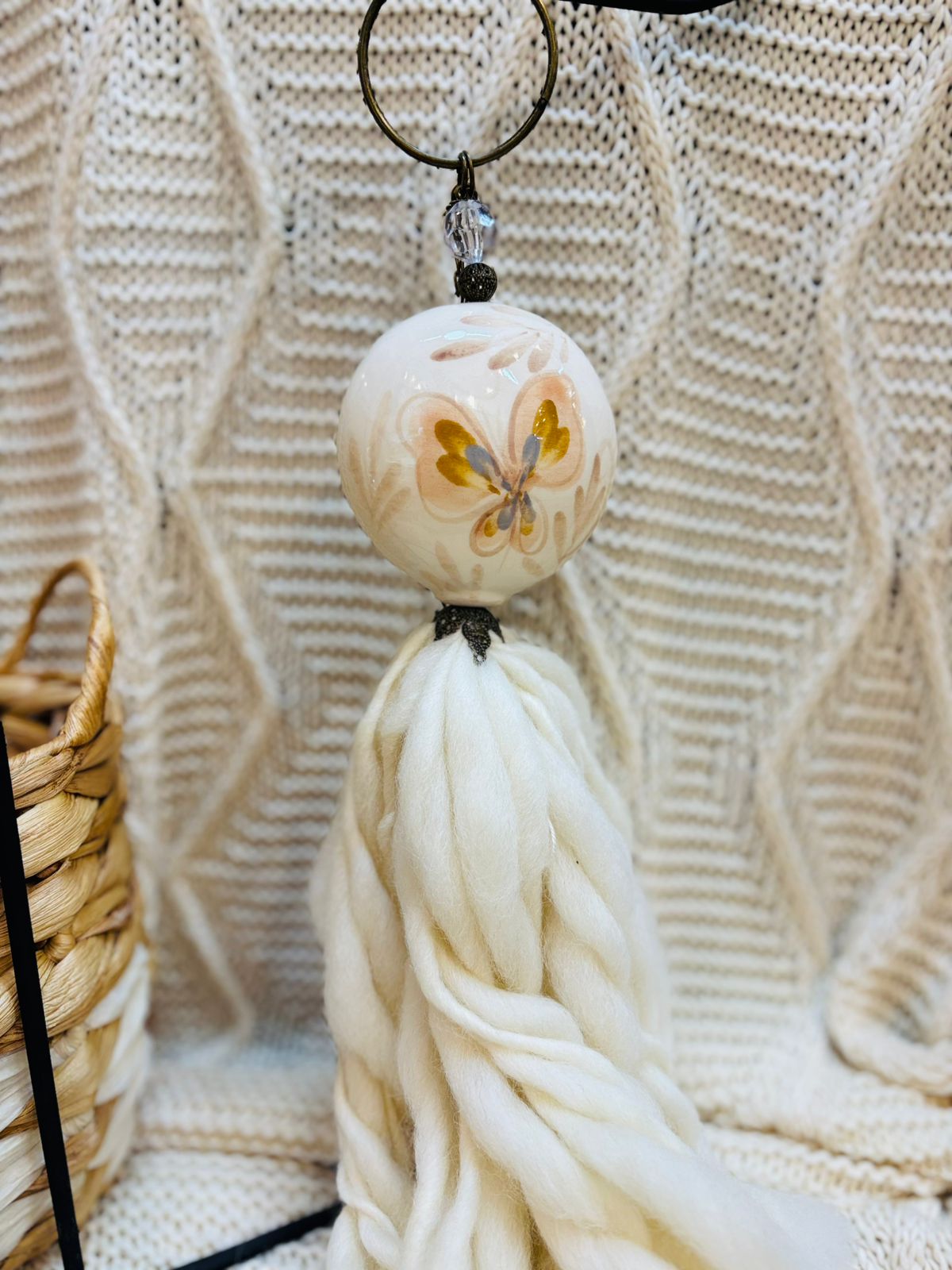 Borla medallón cerámica pintada a mano de 10cm de diametro. puede utilizarse como borla de cortina, colgante, o puertero.